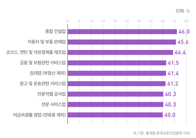 17개 산업 중 건설업 45%, 금융업 40%...페이갭 가장 ‘심각’