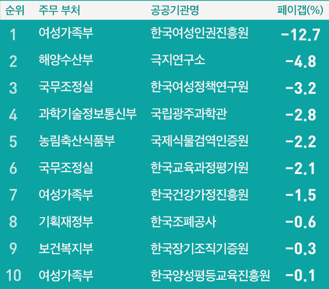 페이갭 심각 정부법무공단, 체육진흥공단...